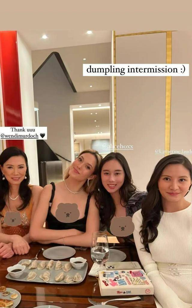 这也是雅诗兰黛的曾孙儿媳何超新、邓文迪、顾艾玲婚后首次出现在镜头中,身着白色条纹长裙,长发飘飘。