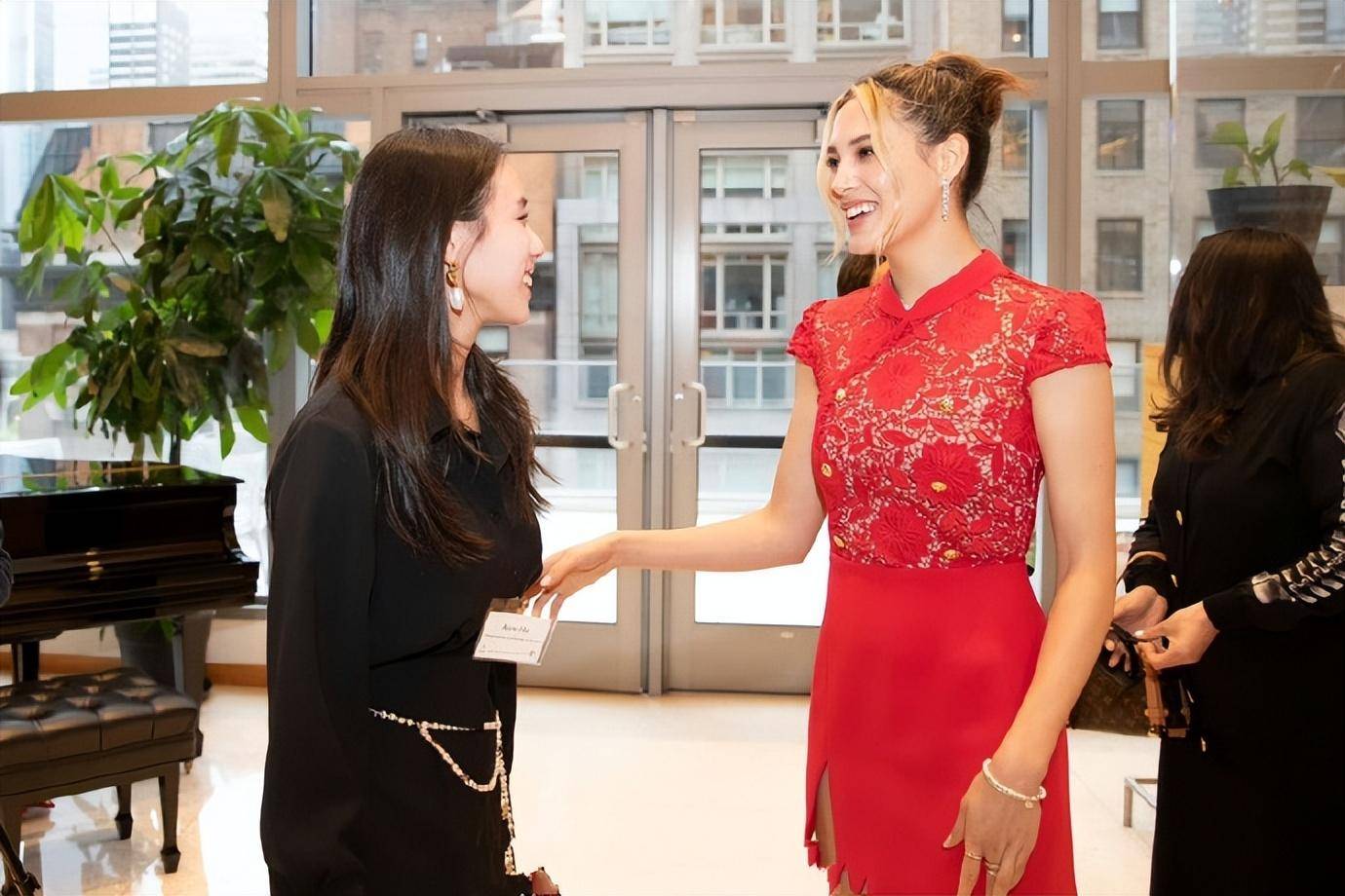 据悉,何超新这次是参加一个国外的活动。在这次活动上,何超新和顾爱玲也是单独同框,被其他网友见面。当时的何超新穿着黑色长裙,头发很飘逸,而顾爱玲穿着红色裙子,配着珍珠手链。